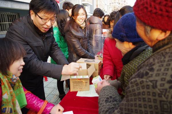 为深入学习宣传十八大精神、做好党建带群建工作,12月25日下午,淮阴师范学院后勤集团第五党支部全体党员在集团副总经理、社区建设工作指导员贾杰亚的带领下,来到清新花苑社区开展“十八大精神宣传进社区,节能环保共创美丽家园”主题党日活动。此次主题党日活动围绕“推进生态文明建设”主题展开,向社区居民赠送十八大报告读本,宣讲十八大精神,并免费发放节能灯泡、高能电池,还当场回收了废旧电池。